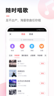 1. 海量曲库:包含众多热门及小众歌曲,满足不同用户的k歌需求。