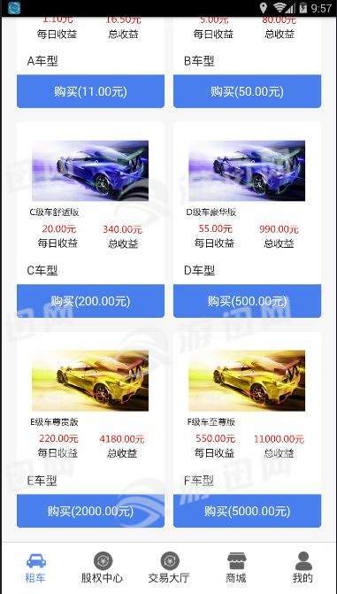 2、车辆的等级超高其收益就更加可观,不同的品牌型号车型可以选择;