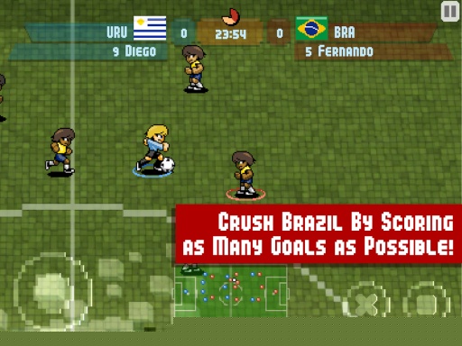 《像素足球之马拉卡纳之战》这款游戏不仅是一款有趣的足球游戏,更是足球历史上真正发生过的一场足球战役,巴西足球国家的被乌拉圭踢了个7:1,这酸爽的感觉貌似在14年的世界杯也发生过一次,德国踢巴西也是7:1,世界劲旅也有被一通乱打的黑历史啊。