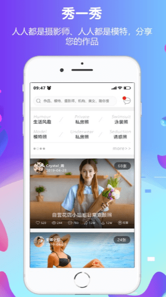 1. 摄影作品分享:摄影师和模特可以在此发布自己的作品,吸引更多粉丝和同行关注。