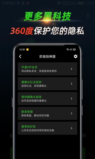 1. 高效检测:采用先进的数据挖掘和红外探测技术,快速识别隐藏摄像头。