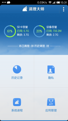 3. app管理便捷:支持快捷卸载app及清理安装包,还可将大型游戏等数据量大的app数据包移动到外置sd卡中,节省系统空间。