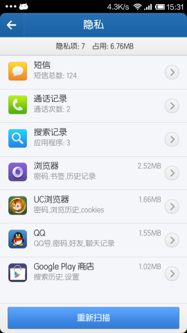 2. 全面的隐私保护:能够清理浏览器历史、短信、通话记录等隐私信息,确保用户隐私安全。