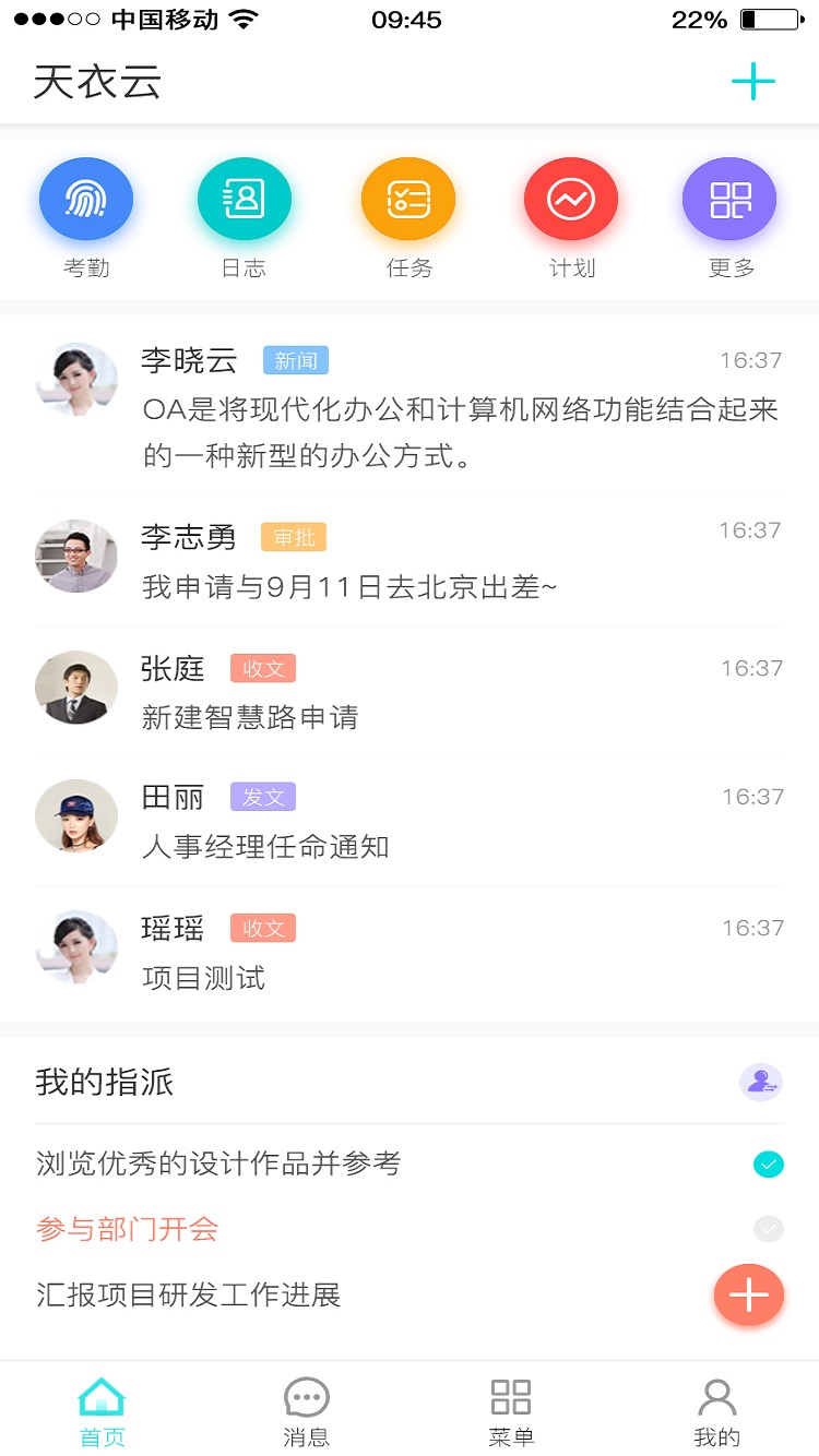 天衣办公是一款集oa、crm、项目管理于一体的商务办公软件,旨在为用户提供便捷、高效的商业管理服务。该软件功能强大,涵盖了写日志、周报、录入客户、发布任务、申请表单、审批表单、即时通讯、项目与客户管理、泳道图大数据统计、客户跟进记录、工作计划、商机管理、进销存管理、通讯录、合同管理、公司空间以及设置提醒等多项功能。用户可以通过天衣办公快速解决各种办公需求,实现线上线下无缝对接,提升工作效率。