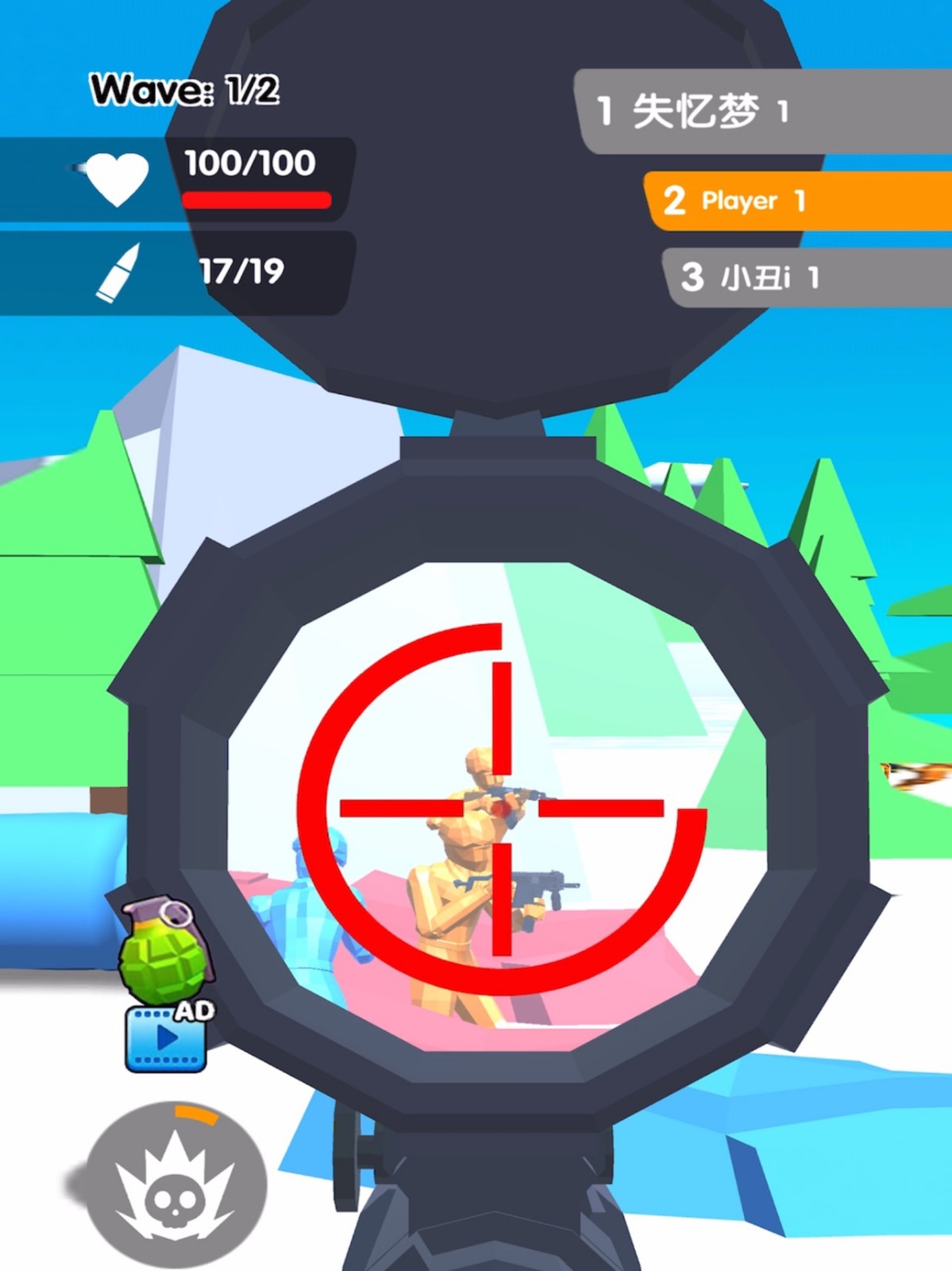 1. 玩家通过按和滑动屏幕来控制视线,瞄准敌人后自动攻击。