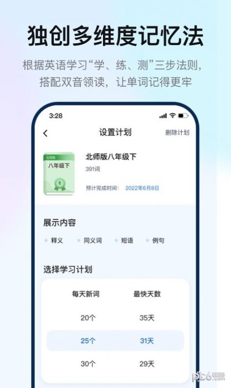 3. 用户还可以设置每天的学习单词数量,系统将根据艾宾浩斯遗忘曲线生成对应的学习和复习计划。