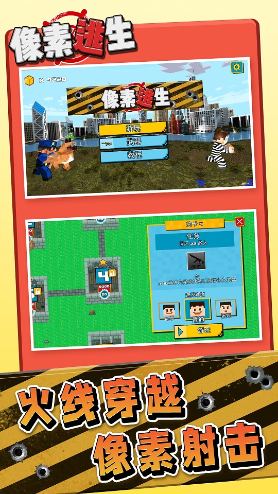 像素逃生警察抓小偷是一款集刺激、趣味和挑战于一体的射击游戏。其独特的像素画风和高度自由度的玩法为玩家带来了全新的游戏体验。无论是单人挑战还是多人对战,都能让玩家充分感受到警匪追逐的紧张与刺激。这款游戏不仅考验玩家的射击技巧,还需要玩家具备一定的策略和团队合作能力,是一款值得一试的射击游戏。