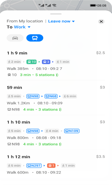 2. 实时路况更新,帮助用户规划时间更短、线路更优的出行路线。