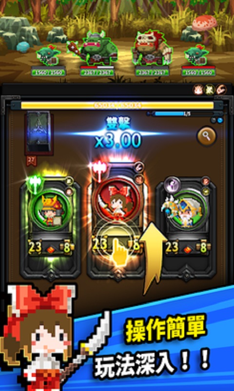 搭配组合,攻击力Up! Up!组合 X 属性 X 技巧, 虽简单却有深度的战略!使用战略进行战斗。