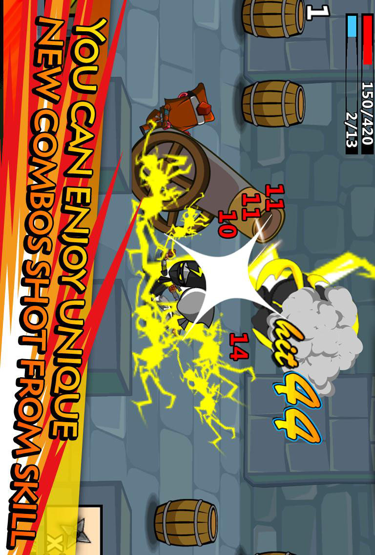 《忍者之卷轴大战 Ninjas: STOLEN SCROLLS》是一款快节奏休闲动作类游戏,我们的小忍者因为忍者里的极密卷轴被偷,决定要用忍者的方法去夺回来!游戏的基础玩法是动作闯关,触屏点击就能近身攻击敌人,还有十几二十种忍者武器。《忍者:卷轴大战 Ninjas: STOLEN SCROLLS》中出现的反派角色众多,有抡锤狂砸的巨人,有超级大狗,有各种邪派忍者等,共同丰富了游戏的内容。面对这些强大的敌人,你可不是那么容易脱身的,不过,前面提到的瞬间移动可以帮大忙,就算是你的对手再强大,你可以使用这一招迅速近身狂打一气,迅速移动抽身,然后故技重施,打斗的节奏非常快,击打感非常强。虽然过程有些繁琐重复,但不失为策略,而且还能包括玩家在血值较低的情况能够顺利通关。这一招玩家们可要记好了。游戏提供多个忍者角色供玩家选择,每个技能特长各不相同,像是火焰、空气,这些都可以融入到格斗动作中——近身揍几圈,跑远使出对应的技能。