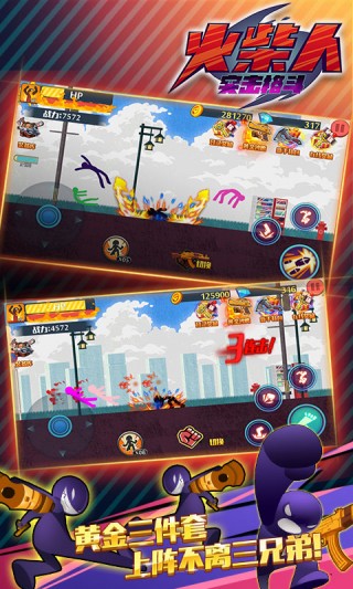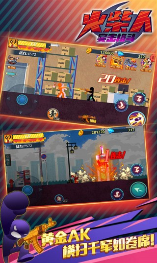 3、街头格斗 精致打造:画面中无论是主角火柴人还是对手,造型几乎一模一样,只不过在颜色上做了处理,格斗时的逼真的动态效果。