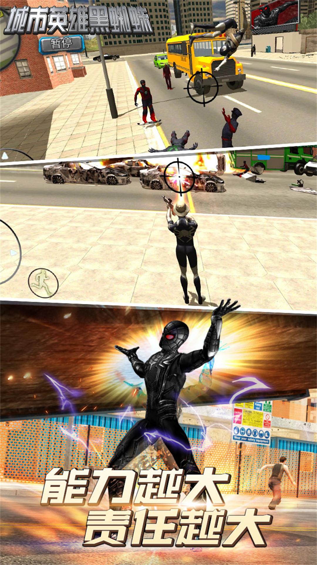 城市英雄黑蜘蛛以其独特的角色设计、丰富的游戏机制和紧张刺激的游戏体验,为玩家带来了一场视觉与操作的双重盛宴。游戏中的黑蜘蛛英雄形象鲜明,战斗动作流畅,打击感强烈,让人仿佛置身于真实的格斗场景中。同时,游戏还提供了丰富的任务系统和反派角色,让玩家在享受格斗乐趣的同时,也能沉浸于紧凑且富有吸引力的剧情之中。此外,游戏还支持多人对战模式,进一步提升了游戏的可玩性和竞争性。总的来说,城市英雄黑蜘蛛是一款值得一试的动作冒险类游戏。