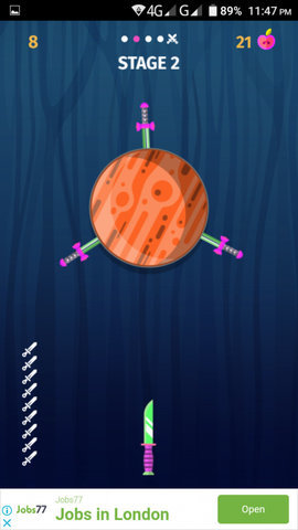 2. 刀具种类丰富,玩家可以通过收集苹果来换取更多的飞刀类型。