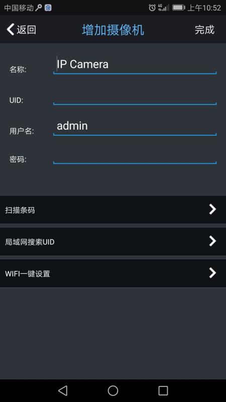 2. 添加摄像机设备,输入摄像机的p2p id、用户名和密码。