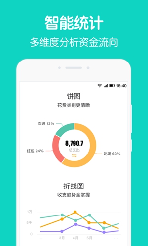 3. 统计分析:软件自动生成花销统计表,提供趋势图、收支构成图等统计图表,帮助用户直观了解财务状况。