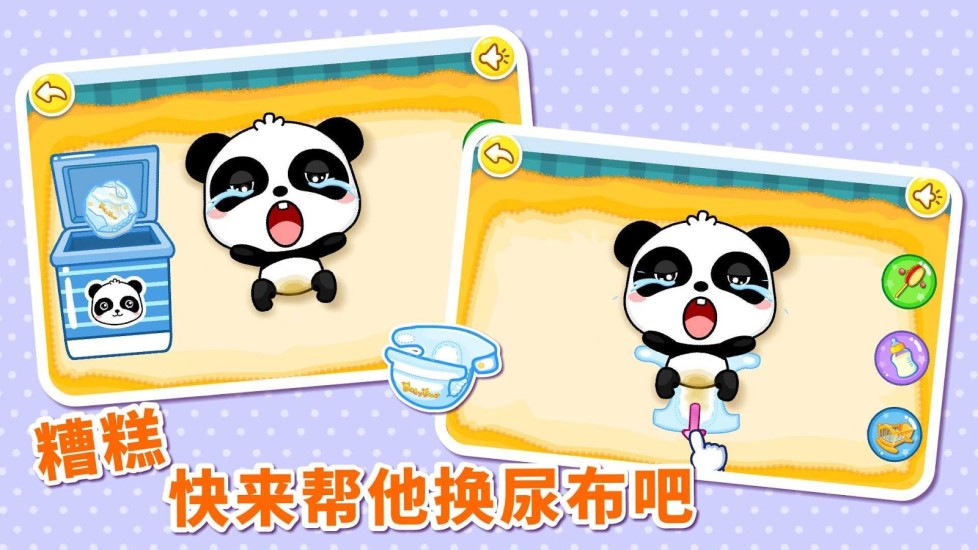 《熊猫小宝宝看护日》是一款供宝宝玩的角色扮演类游戏,通过让孩子在不同场景照顾熊猫的过程,启发孩子的智商,培养孩子的能力,寓教于乐给孩子一个快乐、自由的童年,让孩子快乐的成长。软件画面风格细腻,颜色靓丽,很容易吸引孩子的注意。感兴趣的家长快来下载使用吧!