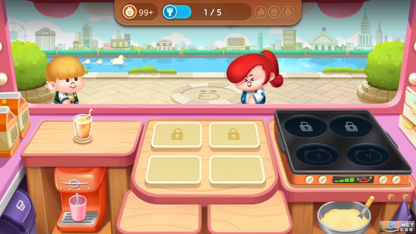 line熊大上菜是一款充满趣味和挑战的模拟经营类手游,它以line上的表情包角色为主题,让玩家与布朗熊、可妮兔、莎莉鸭等可爱的角色一起经营餐厅,为来往的顾客制作出美味的料理。游戏画面精美,角色设计萌态可掬,操作简单易上手,只需点击屏幕即可完成各种烹饪动作。丰富的游戏模式和多样的料理种类,让玩家在享受美食的同时,也能体验到经营餐厅的乐趣。