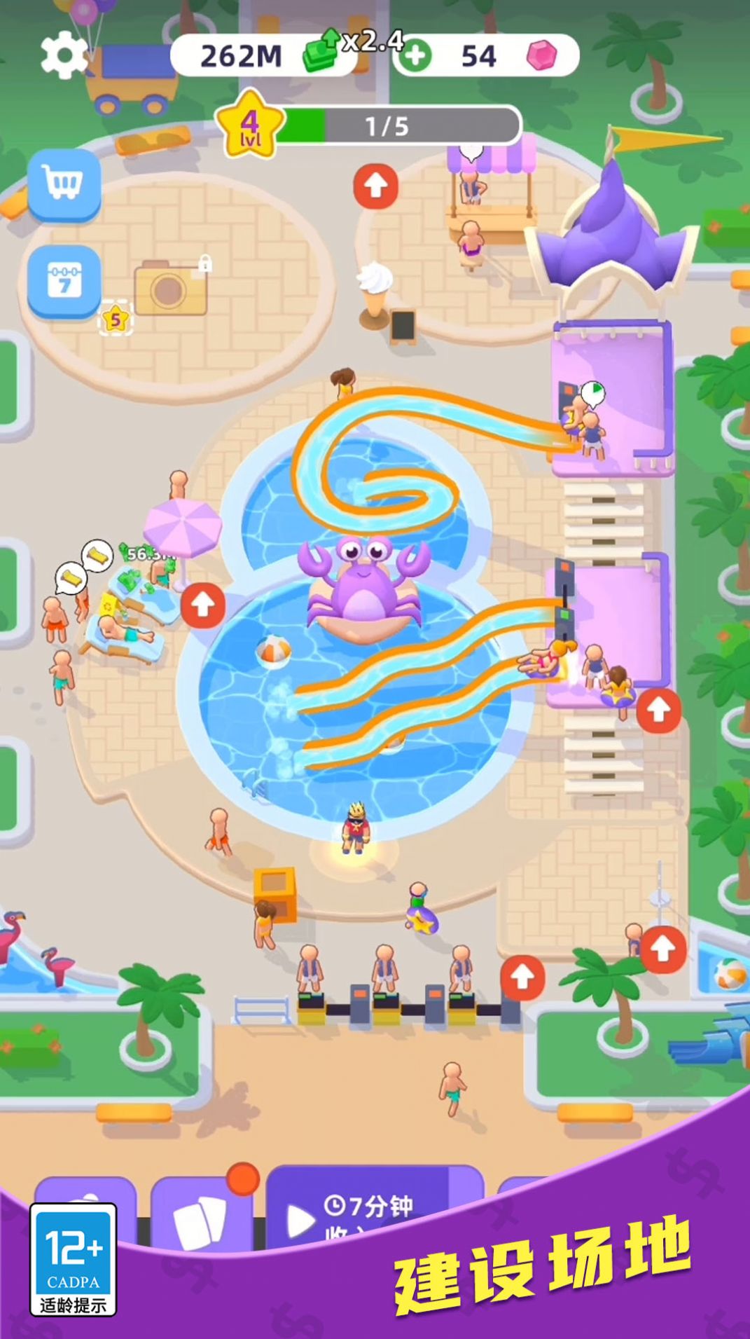 1. 设施建设:玩家需要从零开始建造水上乐园,包括喷水池、滑水道等各种游乐设施,以及餐厅、卫生间等基础服务设施。