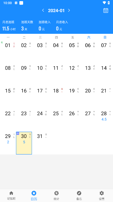 2. 软件内置全国法定节假日及调休规则,准确区分正常工作日与加班时段。