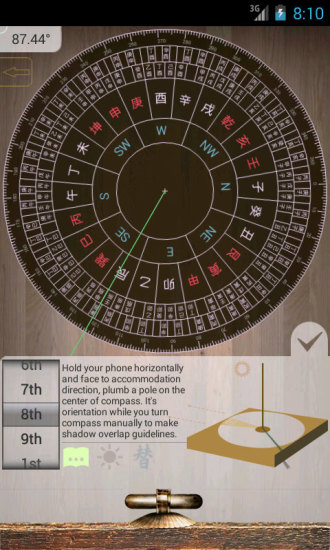 1. 缩放功能:罗经可任意放大和缩小,无级缩放,缩放后显示效果无损,适应不同分辨率的手机和pad,确保清晰显示。