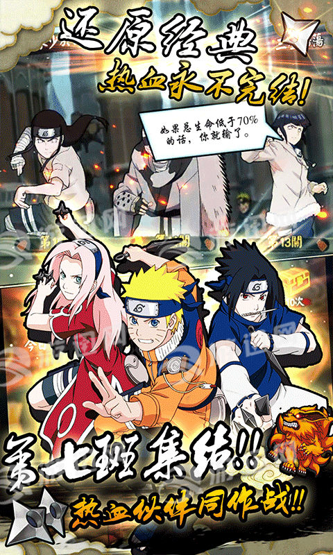 1、以童年的记忆火影为世界的背景,各种你熟悉的英雄人物,在这里闪亮的登场,随意的招募组合。