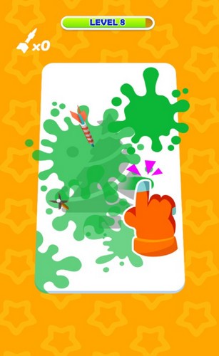 2. 投掷飞镖:玩家需要调整角度和力度,精准投掷飞镖扎破带有颜料的气球,让颜料溅射在图画上。