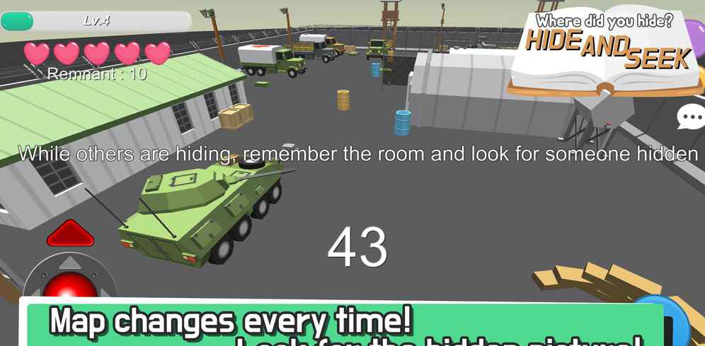 2. 在游戏中,躲藏者需要利用地形和障碍物进行隐藏,而寻找者则需要通过观察和判断来找到躲藏者。