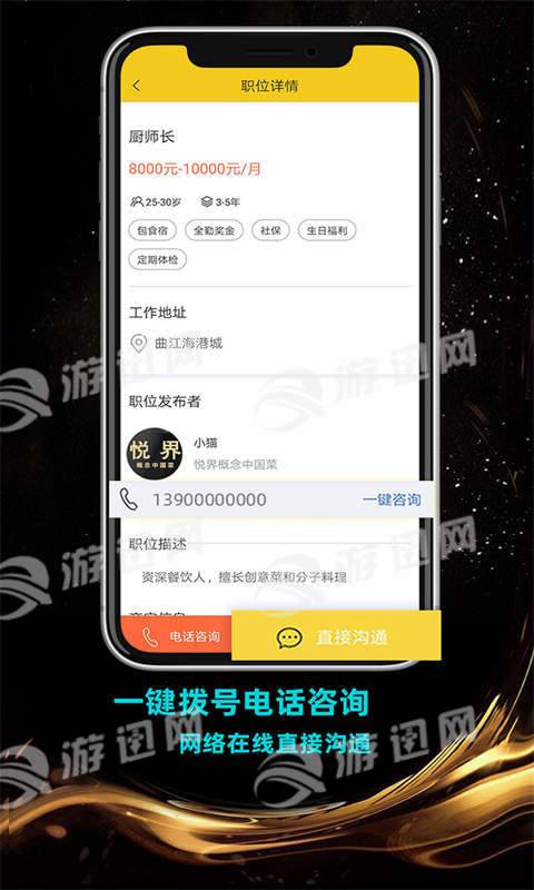 厨八介app专为想从事餐饮行业的人才提供了一个求职招聘的平台,不管你是想做厨师还是服务员等,都可以在这里和餐饮企业进行交流,找到最适合自己的工作环境。厨八介app为你提供电话咨询方式和在线聊天方式,在线聊天更为方便,文字语音图片都可以发送,帮助你更好地了解心仪企业。在找餐饮工作的小伙伴快来吧!