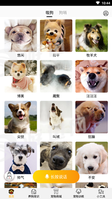 想要和自己的宠物进行交流吗?那你手中怎么能没有一款宠物交流器?小编今天便为大家带来了款狗语翻译器,能够将狗狗的语言翻译成人类的言语,实现人与宠物之间无障碍沟通交流,养宠物人士必备,简单使用操作,只需在狗狗在狗叫时,将录音按钮按下即可,完全免费,让你无需揣摩猜测,赶紧试试吧!