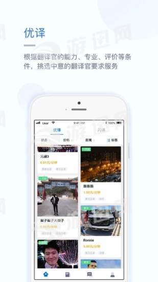 优译Uear是一款真人实时在线口译翻译软件,有别于机械式、字典式翻译工具,把人与人的语言沟通还给人类,让语言服务犹如代步打车。