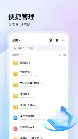 3. 智能分类与搜索:根据文件类型、时间、大小等属性进行智能分类,支持关键字搜索和标签功能,提高查找效率。