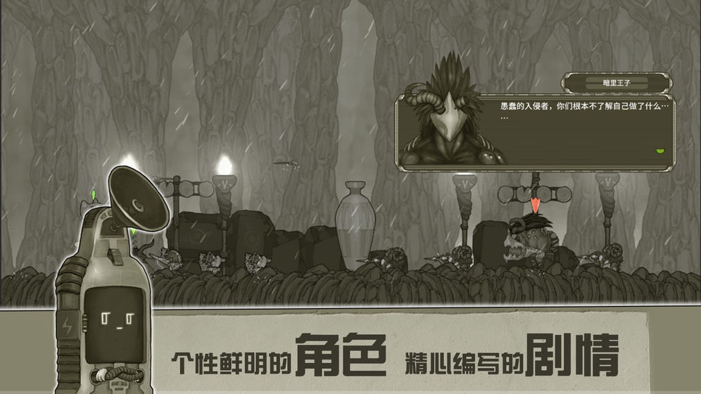 1. 手绘风格独特,采用黑白灰三色主色调,ui设计融合蒸汽朋克元素。