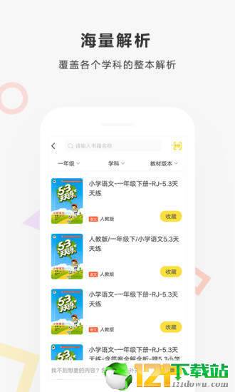 2. 查找便捷:软件支持扫描条形码、按书名搜索、按年级搜索、按学科搜索、按版本搜索等多种搜索方式,方便学生快速定位题目。