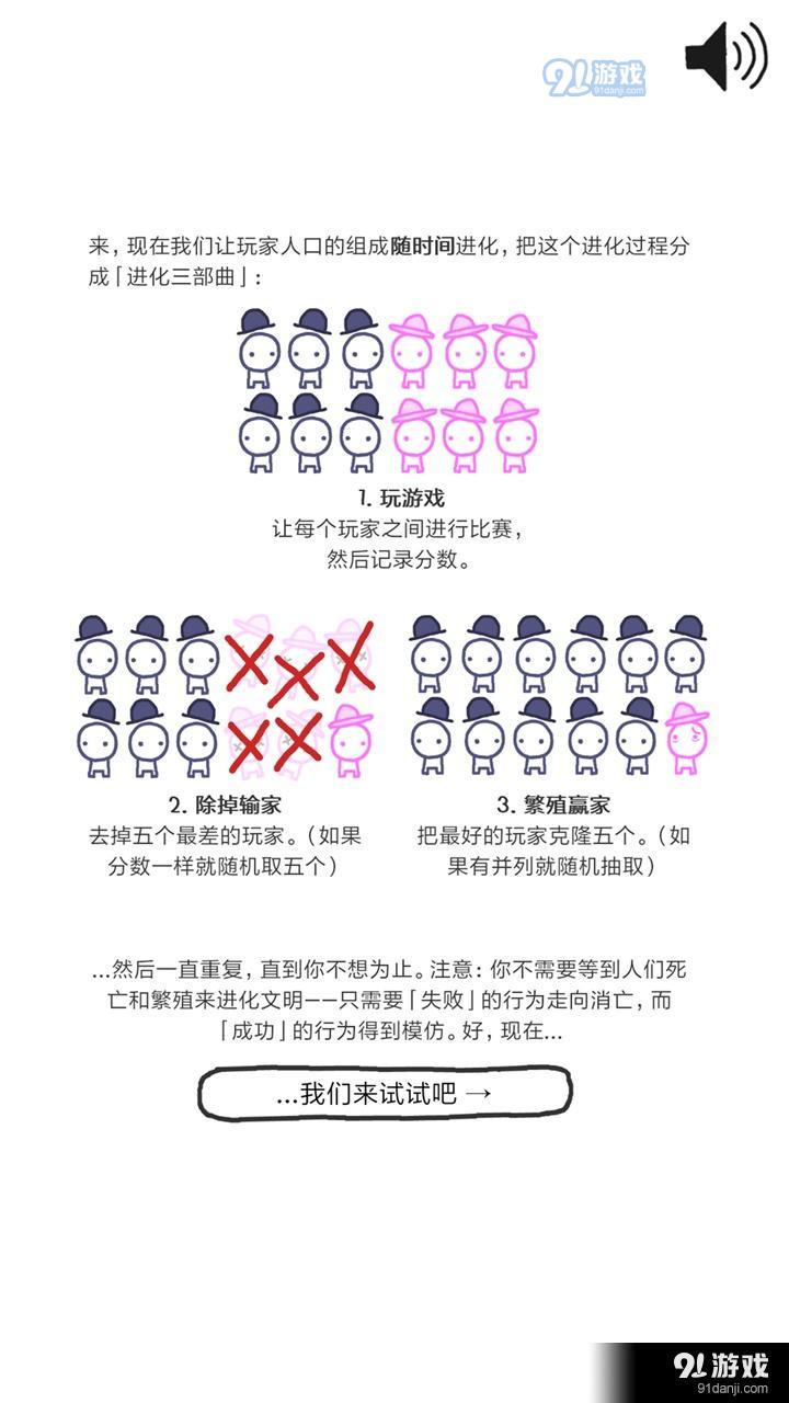 信任的进化-合作自私的基因是一款由火树游戏开发的益智类手机游戏,该游戏以其独特的视角和深刻的主题在taptap平台上赢得了超过90万的关注,并获得了9.9的超高评分。这款游戏并非传统意义上的冒险或角色扮演游戏,而是通过模型和实验,巧妙地将博弈论应用于信任与欺骗、共赢与剥削的社会及心理问题中,让玩家在轻松愉快的氛围中领悟这些复杂概念。