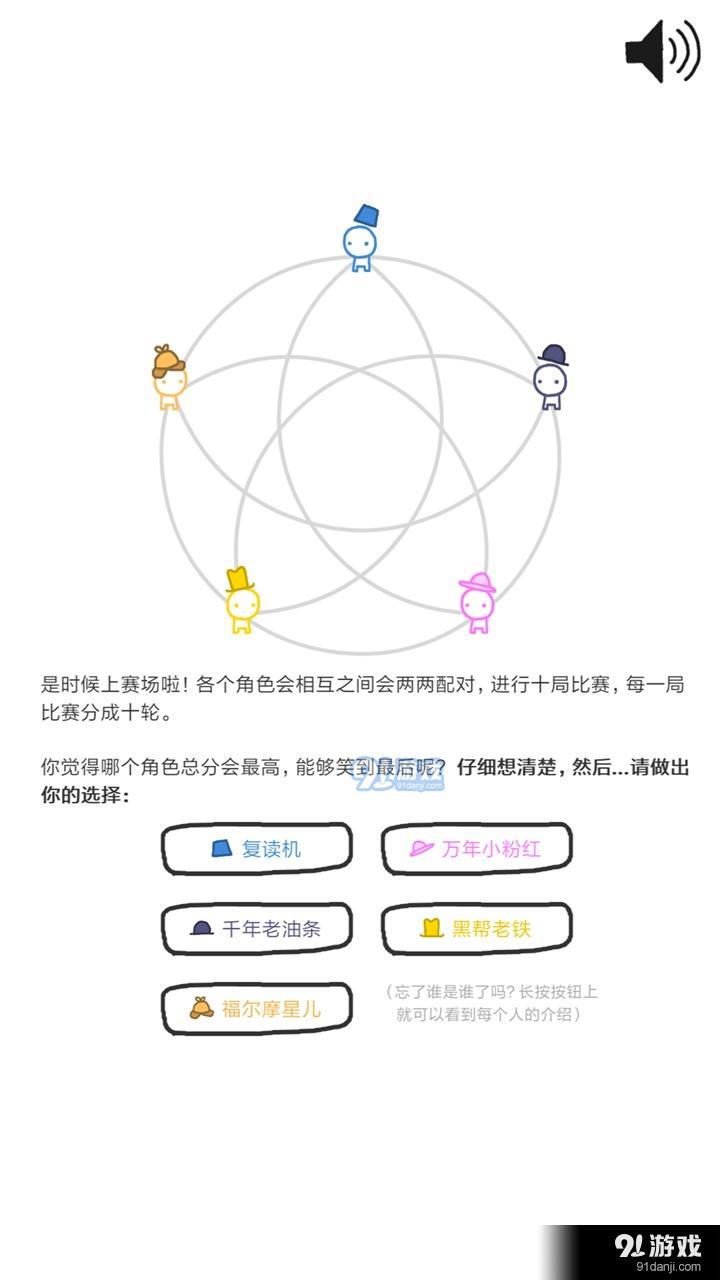 2. 角色互动:游戏内置了多种角色,包括复读机(重复你的行为)、千年老油条(总是欺骗)、万年小粉红(总是合作)、黑帮老铁(对方不欺骗则合作)和福尔摩星儿(根据情况调整策略)。玩家需根据不同角色的特点来制定策略。