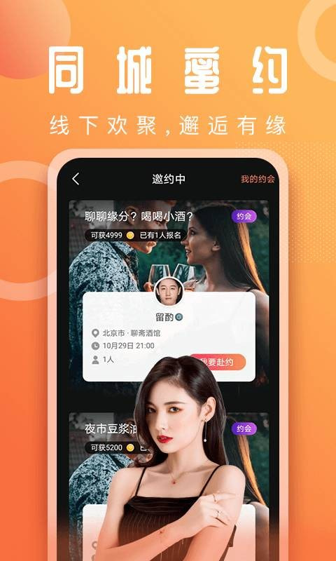 5. 同城约会:基于地理位置推荐同城优质单身男女,一键发起约会邀请,轻松扩大社交圈。