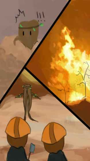 混乱的黑夜中苏醒的小木人(小树人),发现整座森林都被大火环绕。