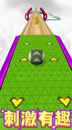 1. 核心玩法:玩家需控制小球在赛道上灵活移动,躲避各种障碍,收集金币。随着游戏进程,赛道难度逐渐增加,考验玩家的反应与操作技巧。