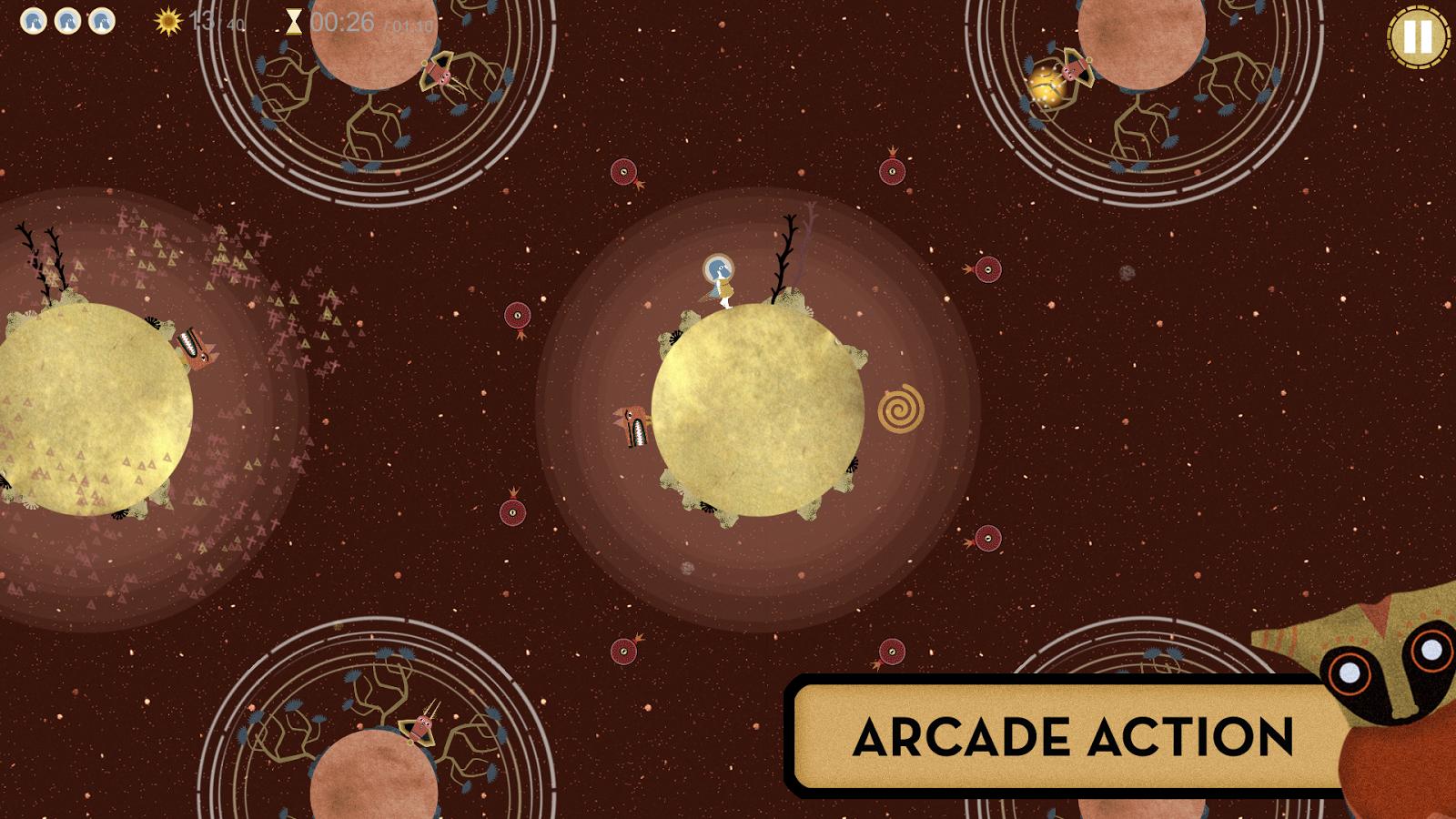 《阿斯特拉》是一款由Fabuloso Games推出的以“星际穿越”为主题的无尽跑酷游戏。在游戏中玩家需要帮助白昼之神赫墨拉(Hemera),巧用重力推动与角度之间的完美配合,在一颗颗行星之间无尽穿越,搜集灵球,但只要一着不慎,便可能坠入黑暗无光的太空之中,走向灭亡。