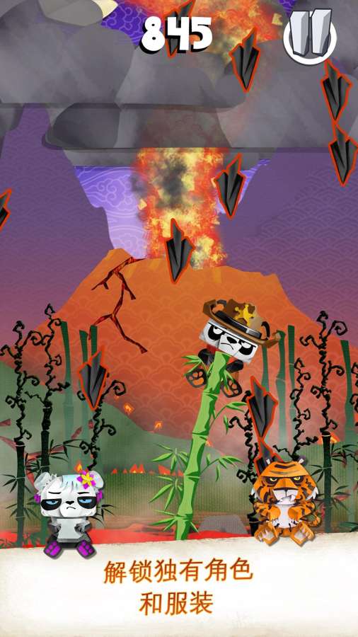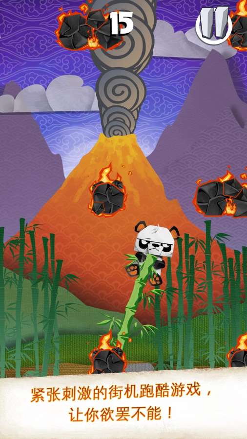 您能在这个全新酷炫的动作游戏中征服火山,获得最佳表现吗?帮助熊猫Cranky在竹子间穿梭摇摆,躲避从火山中射出的燃烧岩石,在危险环境中生存下来!