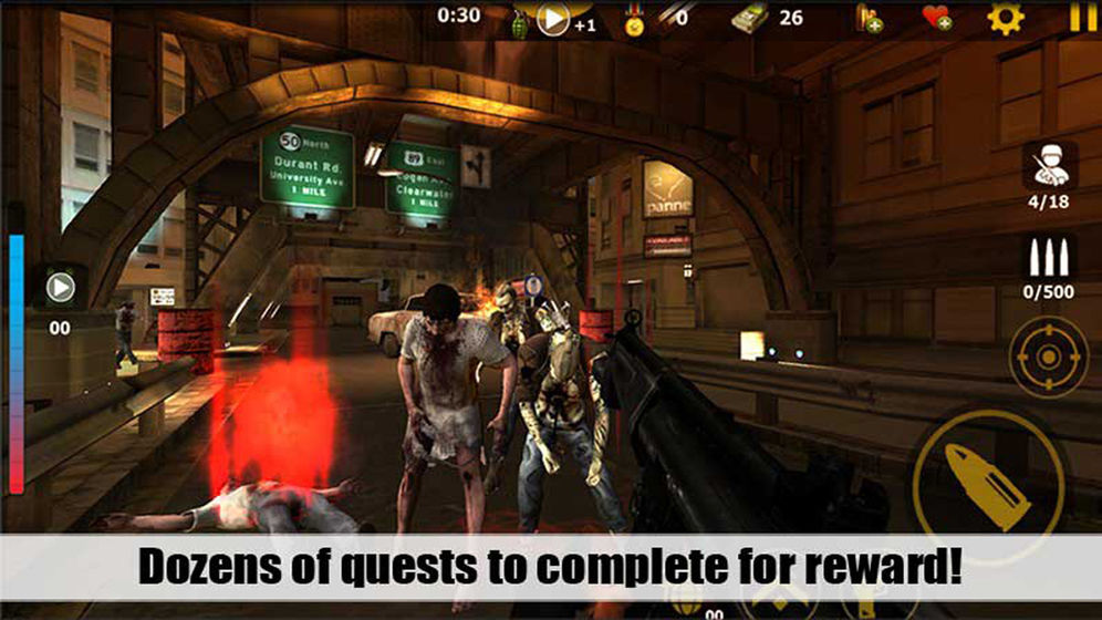 曾经美丽的城市现在成了废墟,到处都是饥饿的僵尸和不死生物。最后你独自完成了一个非常简单的任务——尽你最大的努力去生存或者去死吧!成群结队的僵尸会从四面八方朝你跑来,所以要保持你的目标稳定,不要用尽弹药,因为在最后有一场BOSS的战斗在等着你!完善你的射击技能和生存本能,掌握瞬间杀戮的头像,升级你的武器,购买新的盔甲和弹药-准备清除城市的不死威胁!