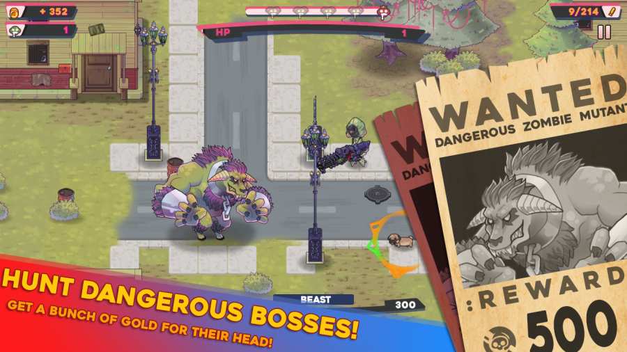 1、点击屏幕操作小人,僵尸遍地都是,瞄准会给你造成威胁的僵尸并进行疯狂的射击;