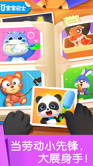 《宝宝劳动小能手国际版》是一款专为2-5岁儿童设计的安卓早教游戏,由知名儿童教育品牌宝宝巴士推出。游戏以卡通画风和真人语音引导为核心,通过模拟日常生活中的劳动场景(如整理玩具、清洗物品、种植采摘等),将生活技能学习与趣味互动深度融合。游戏涵盖四大模块——自理劳动、服务劳动、工艺劳动、种植饲养,每个模块均设置低阶到高阶的渐进式任务,从简单的衣物收纳到复杂的水果拼贴创作,让孩子在操作中掌握分类、清洁、手眼协调等能力。例如,在“刷牙任务”中,孩子需滑动屏幕模拟牙刷上下移动,冲洗泡沫后完成牙齿清洁;在“果园捉虫”环节,需操控捕虫网抓取害虫再采摘水果。游戏通过即时动画反馈和鼓励性语音,帮助孩子建立“劳动成就感”,同时融入团队协作任务(如拔萝卜、捉虫子),培养社交能力与责任意识。