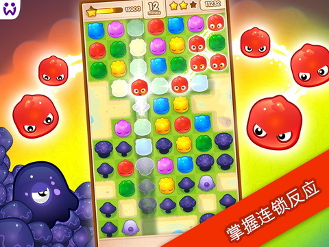 2、游戏界面背景音乐轻快,很有卡通风,游戏内的果冻爆破声也很有感觉。唯一不足就是游戏内并没有音乐效果,只有音效的爆破使得该作的音乐略显不足。