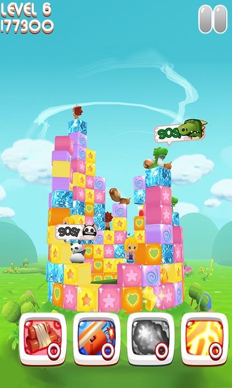 《放下那妹纸》是一款汇聚了3D、解密、策略、消除、旋转、救人等多种元素游戏,清新亮丽的画风,萌点多多的角色,简单易上手的操作,益智解密的突破关卡,挑战极限的无尽模式,支持多人在线PK互动!希望给各位玩家带来与众不同的消除游戏感触。玩家可通过上、下、左、右滑动查看塔子的全景,塔子上有两块或以上相同的连着的颜色时,按一次可以让其突出,再按一次即可消除。有时候会出现图中的引爆器,会把周围8格无差别破坏。通过消除塔顶上人物(或者怪兽)脚下的方块,让他达到脱出条件。