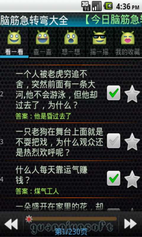1、精选出近4000多条趣味盎然的脑筋急转弯题目。