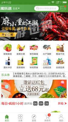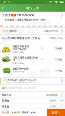 商品新鲜绿色,同城配送只需30分钟用户就可以享受到新鲜美味的食品。