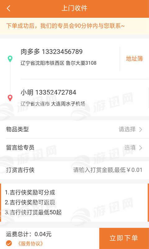 提供上门收件的功能,帮助用户能够减少奔波,在家也能寄件;