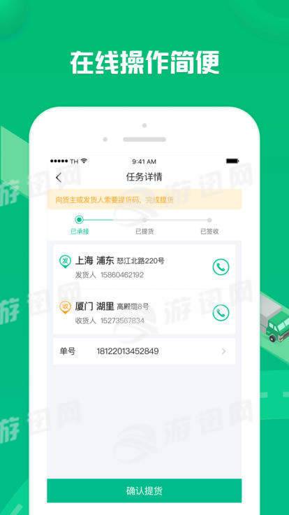 在途操作:联系发货人、收货人,装卸对接简便快速。