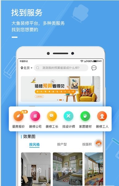 大鱼装修软件一站式新房装修服务,找装修公司、找装修工人、找省钱装修、看装修图片、看装修材料、看装修经验等一应俱全!